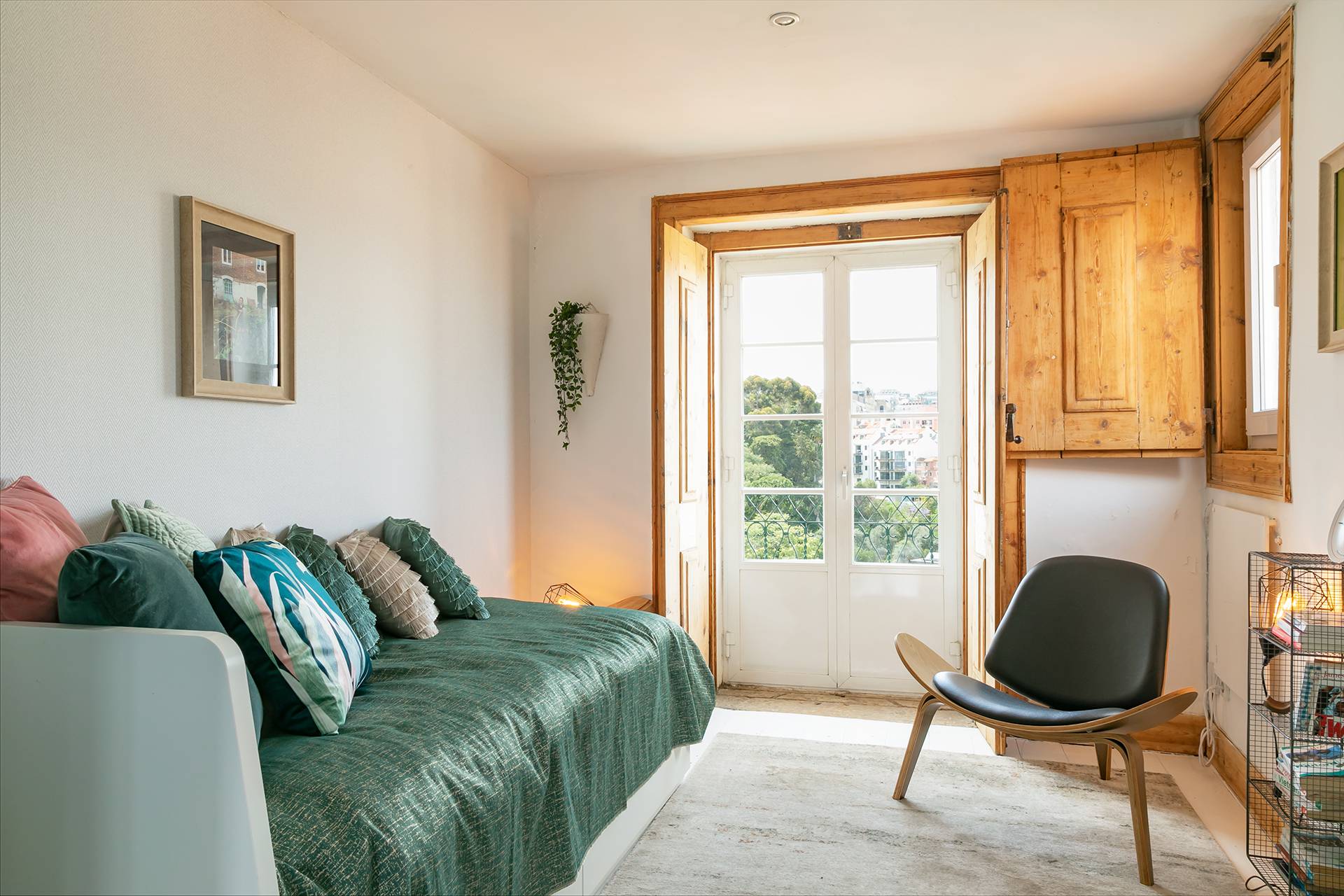 The second bedroom has a twin bed. If you open the window’s wooden shutters, you will discover a new viewpoint over the city.